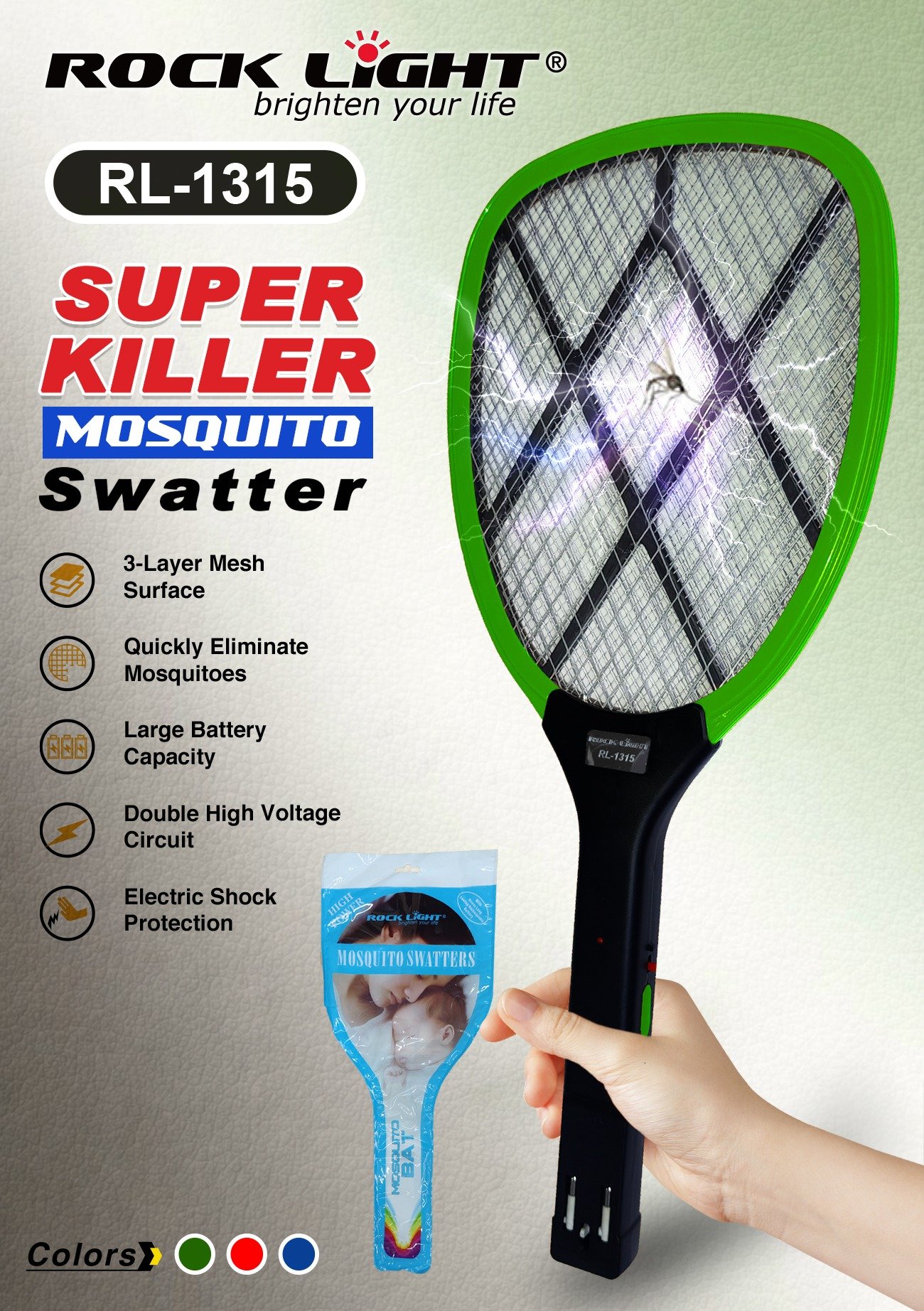RL-1315 – Lightweight Mosquito bat with strong mesh and safe handling design