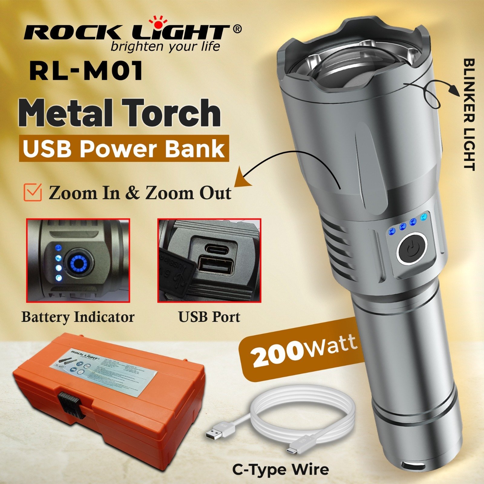 RL M01 rechargeable Metal Torch for long-lasting lighting
