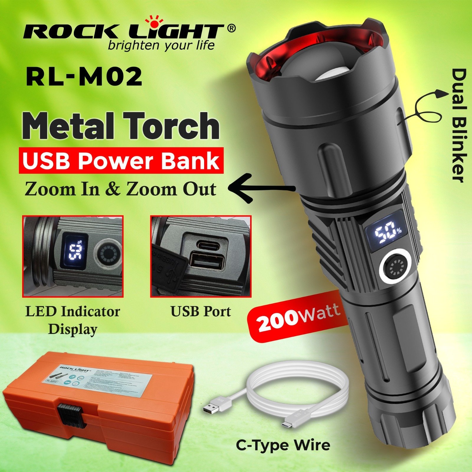 RL M02 strong body Metal Torch with energy-efficient light
