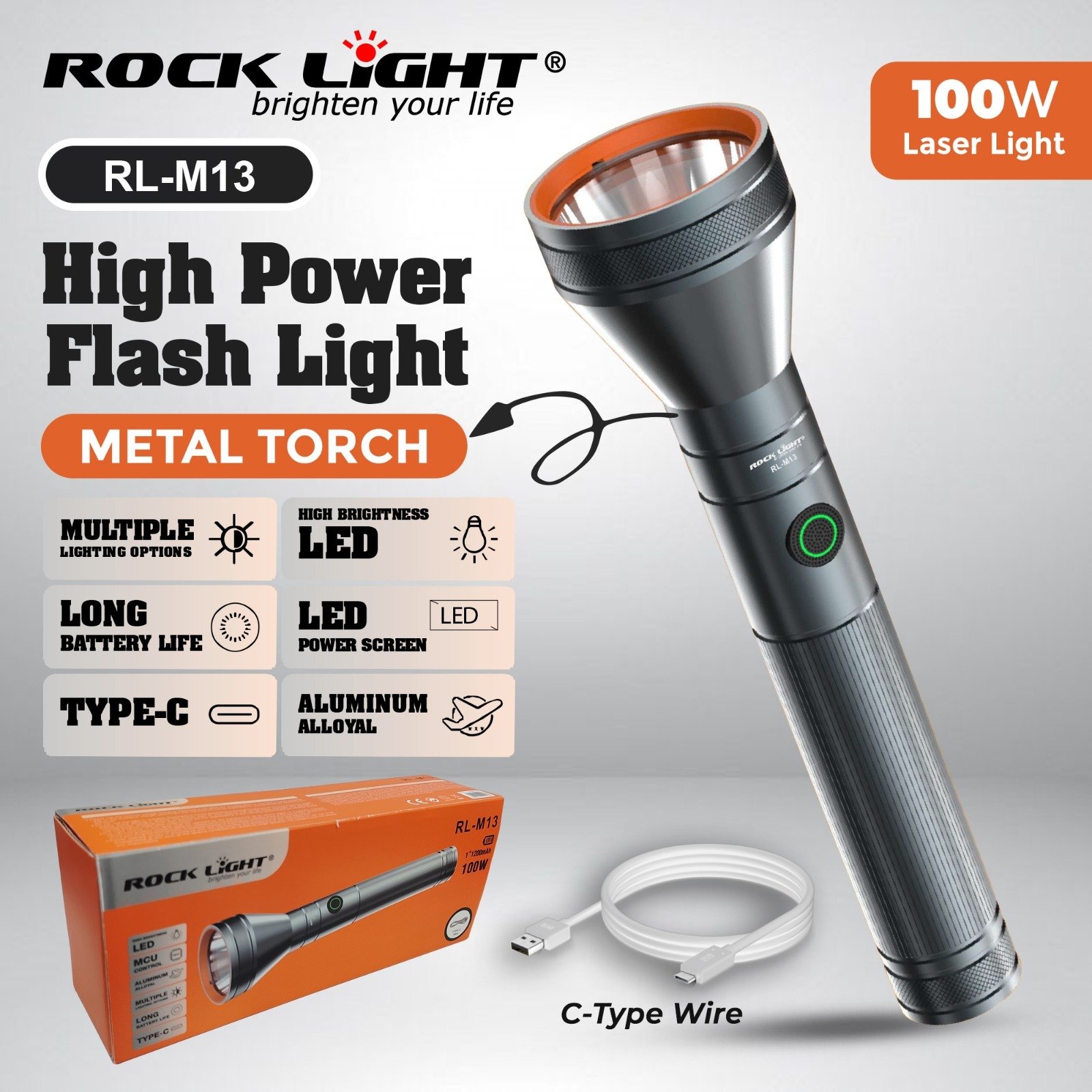 Rocklight | RL-3535 – Rechargeable | Hand Torch, 50W COB