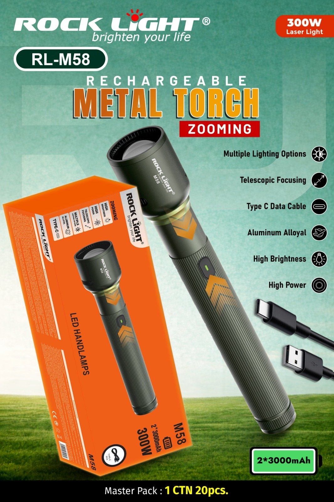 RL M58 portable Metal Torch ideal for camping and security